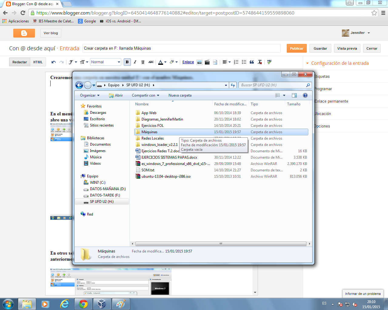 En otros seleccionamos la unidad F:\ (en este caso un pendrive) en la que hemos creado anteriormente una carpeta llamada máquinas.